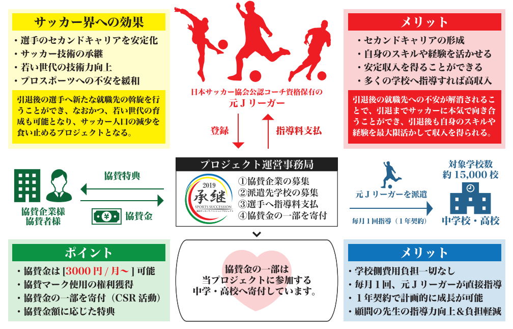 | 目的 | 公立高等学校の部活動に、元プロサッカー選手を指導者として派遣するため |